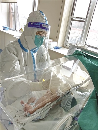 寶寶出生3天后,父母尚未轉(zhuǎn)陰還在隔離病區(qū)住院。在寶寶救治過(guò)程中,醫(yī)護(hù)人員當(dāng)起“臨時(shí)媽媽”,24小時(shí)不間斷輪流看護(hù),一邊依據(jù)病情制定方案全力治療,一邊及時(shí)與寶寶的父母溝通,緩解母嬰分離焦慮情緒。