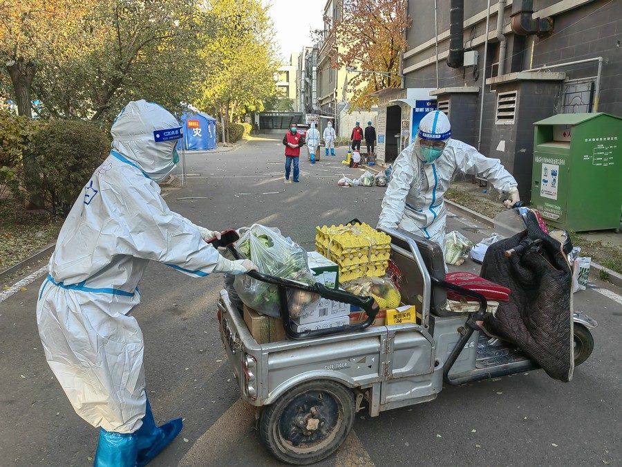 隨著小區(qū)的管控強(qiáng)度越來(lái)越大,居民無(wú)法下樓提取物資,她除了做好以上工作,還化身“滴滴”送貨小司機(jī),不辭辛苦,細(xì)致周到地為居民們搬運(yùn)生活物資。