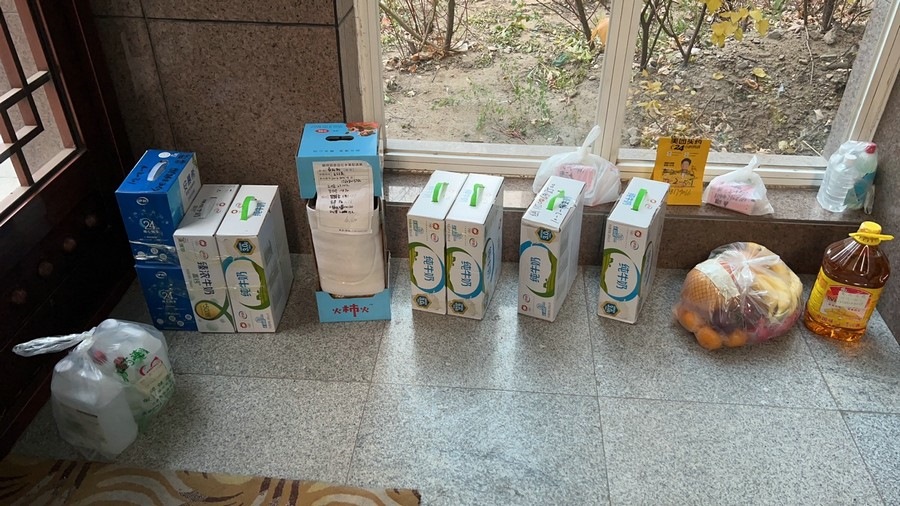 為了避免鄰居們錯(cuò)拿或少拿物資,每天把物資搬運(yùn)回單元門(mén)廳后,都會(huì)一一拍照標(biāo)記戶號(hào)后發(fā)在居民微信群里,暖心地提醒鄰居們領(lǐng)取物資時(shí)一定要做好防護(hù),消殺到位。