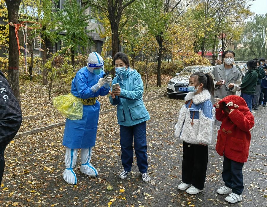 核酸檢測(cè)時(shí),她認(rèn)真檢查居民的抗原檢測(cè)結(jié)果,掃碼錄入信息,幫助使用手機(jī)不熟練或行動(dòng)不便的老人快速完成檢測(cè)。