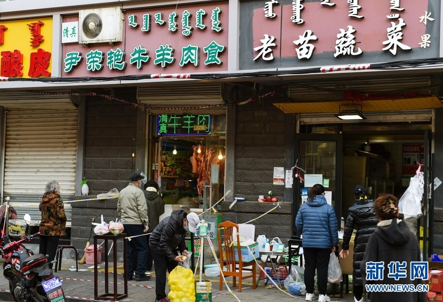 11月17日,市民在呼和浩特市新城區(qū)一家商店排隊購物。新華社記者 王澤聰 攝