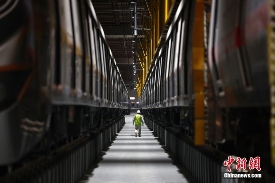 2月20日,工作人員在北京地鐵12號線東壩車輛段巡查列車。北京地鐵12號線正線全長為29.6km,西起西四環(huán)四季青橋南,東至東壩北街,途經(jīng)海淀、西城、東城、朝陽四個行政區(qū),全線共設21座車站,其中換乘站15座,全線建成通車后,將與4號線、5號線、8號線等12條線路實現(xiàn)換乘。當前12號線車輛陸續(xù)進場,工程正在加速推進。中新社記者 富田 攝