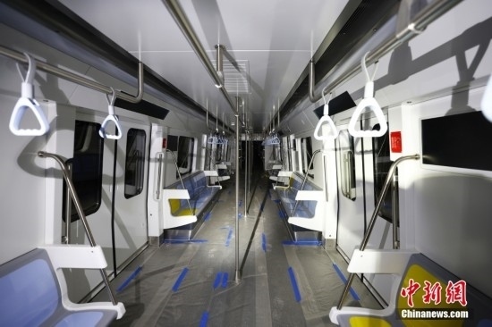 2月20日,在東壩車輛段內(nèi)停放的北京地鐵12號線列車車廂內(nèi)景。北京地鐵12號線正線全長為29.6km,西起西四環(huán)四季青橋南,東至東壩北街,途經(jīng)海淀、西城、東城、朝陽四個行政區(qū),全線共設21座車站,其中換乘站15座,全線建成通車后,將與4號線、5號線、8號線等12條線路實現(xiàn)換乘。當前12號線車輛陸續(xù)進場,工程正在加速推進。中新社記者 富田 攝