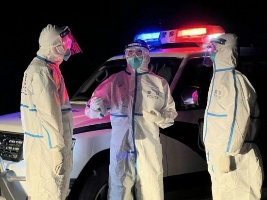 圖為疫情期間,黃健現(xiàn)場帶領民警開展防疫查驗工作
