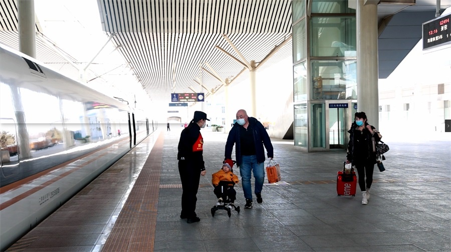 “旅客們出門在外,難免遇到一些問題,我做的雖然不是驚天動(dòng)地的大事兒,但只要能幫到別人,我就覺得很開心?!?023年1月,正在站臺(tái)巡視的陳甜甜發(fā)現(xiàn)一位手拿拐杖的旅客顫巍巍地走近列車,她主動(dòng)上前詢問。原來,這位旅客是一名盲人,獨(dú)自一人準(zhǔn)備從北京乘車回包頭。為更好地照顧這位特殊的旅客,陳甜甜帶著他尋找座位、幫他放置行李。乘車途中,陳甜甜還細(xì)心地請男乘務(wù)員同志帶他如廁方便,讓對方感到無微不至的關(guān)懷。