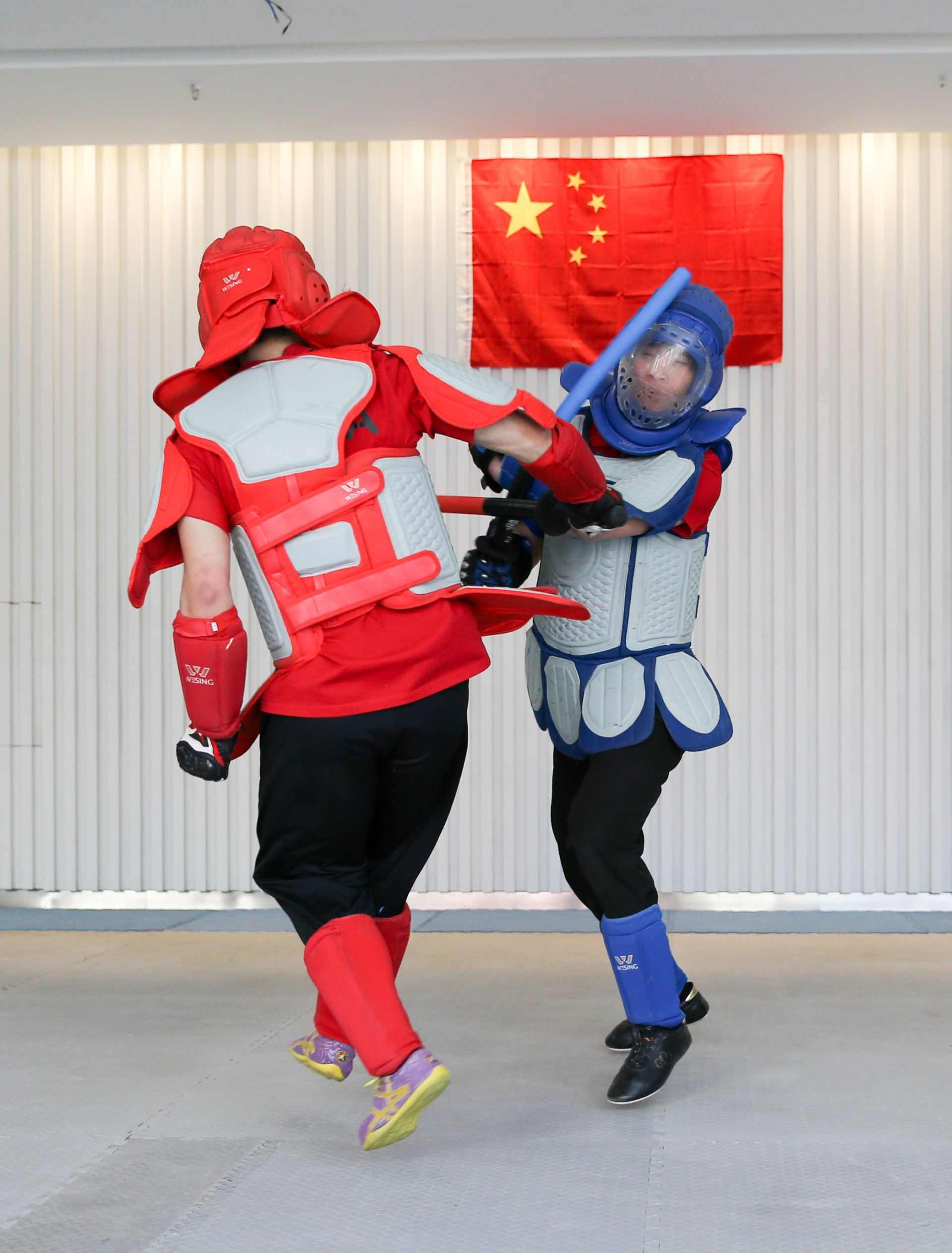 “武術(shù)兵道以手持短兵器為攻防之道,融武術(shù)套路演練與競技對抗為一體。與劍道和擊劍不同,武術(shù)兵道的進(jìn)攻方要巧妙使用劈、砍、斬、刺等招數(shù)的組合,連續(xù)攻擊對手身體;防守一方要用架、格、卸等招數(shù)避免被對手擊中頭部、軀干、小腿等得分區(qū)域?!眱?nèi)蒙古武術(shù)兵道隊教練張宇說。