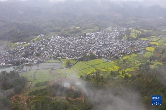 仲春時(shí)節(jié),細(xì)雨如煙,安徽省黃山市黟縣處處春意盎然,田園花海與鱗次櫛比的徽派建筑相映成趣,游人徜徉其間,感受詩情畫意的生態(tài)鄉(xiāng)村。