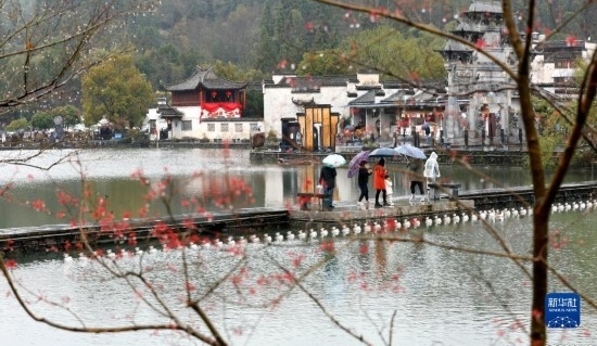 這是黟縣宏村南湖春景(3月24日攝)。