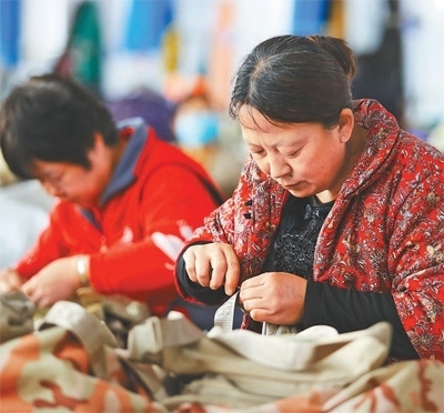 在江蘇省淮安市蘇嘴鎮(zhèn),工人在一家紡織企業(yè)的生產(chǎn)車間里作業(yè)。該企業(yè)帶動近200人實現(xiàn)家門口就業(yè)。趙啟瑞攝(影像中國)