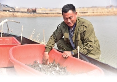 吉林省前郭爾羅斯蒙古族自治縣高級(jí)農(nóng)技師劉雙在補(bǔ)充蟹苗。王國彬攝