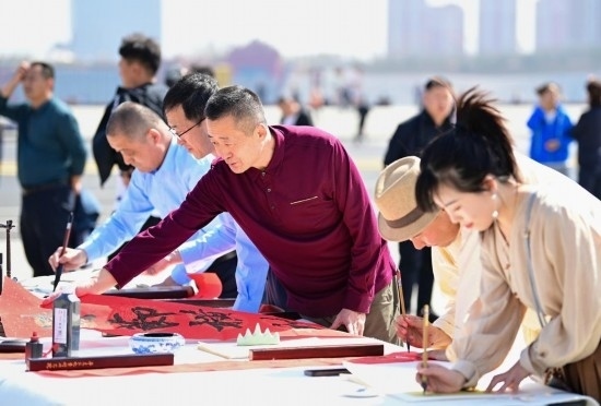 當日,內(nèi)蒙古鄂爾多斯市康巴什區(qū)在亞洲雕塑藝術(shù)主題公園舉辦“紙鳶飛舞頌春色”系列活動,風(fēng)箏愛好者和文學(xué)書法愛好者在活動中彩繪風(fēng)箏,詠詩賦詞,放飛紙鳶,享受春光。