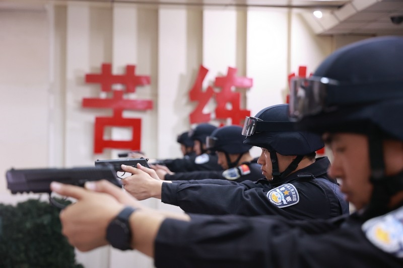 “驗(yàn)槍,上彈匣,開始射擊!”隨著現(xiàn)場指揮員的口令,密集的槍聲響徹地下靶場。對于特警而言,精度射擊是日常基礎(chǔ)訓(xùn)練,相比其他警種,他們需要完成兩種以上武器的精度射擊訓(xùn)練,在技巧和精準(zhǔn)層面要求更高。同時(shí),本次集訓(xùn)更增加了戰(zhàn)術(shù)攻防應(yīng)用射擊,攻防雙方以小組作戰(zhàn)的形式,在模擬場景中圍繞劫持人質(zhì)、武裝對抗等警情開展對抗。小組成員們密切配合,采取戰(zhàn)術(shù)動作對房間內(nèi)的嫌疑人進(jìn)行武力攻擊,對發(fā)現(xiàn)的人質(zhì)予以保護(hù),擊斃嫌疑人、解救人質(zhì)。通過多輪次的攻防互換,特警隊(duì)員們的臨戰(zhàn)心理、戰(zhàn)斗意識和突擊攻堅(jiān)戰(zhàn)術(shù)有了顯著增強(qiáng),更進(jìn)一步提高了團(tuán)隊(duì)協(xié)作能力。