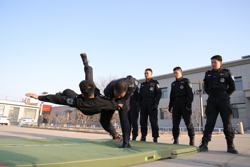 在開展大量專業(yè)體能、力量訓(xùn)練和警務(wù)技能訓(xùn)練的基礎(chǔ)上,集訓(xùn)圍繞霸座占座、醉酒滋事、站車擾序、脫逃襲警等突發(fā)警情開展“紅藍(lán)對抗”實(shí)戰(zhàn)訓(xùn)練演練。期間,專業(yè)教官擔(dān)任的“藍(lán)軍”以無限貼近實(shí)戰(zhàn)為原則,突出“實(shí)兵、實(shí)情、實(shí)景、實(shí)裝”,動態(tài)模擬各類違法犯罪行為,不時(shí)引發(fā)矛盾沖突升級,為特警隊(duì)員們擔(dān)任的“紅軍”出難題、找漏洞,有效提高特警隊(duì)員們的執(zhí)法安全意識和應(yīng)急反應(yīng)能力。