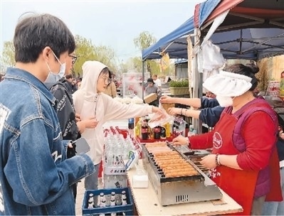 4月5日早上8點,北京市昌平區(qū)沙河大集已經擠滿了人。熱氣騰騰的羊雜湯、現烤現賣的老蛋糕、火架上滋滋冒油的烤雞,集市上各色小吃攤前蒸騰的熱氣和沿街的香味令人垂涎欲滴。不少市民特地前來吃個早飯,再買上接下來一周的食材。