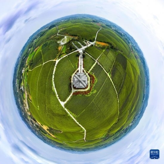 4月4日拍攝的遵義市湄潭縣永興鎮(zhèn)“萬(wàn)畝茶?!保o(wú)人機(jī)全景拼接照片)。