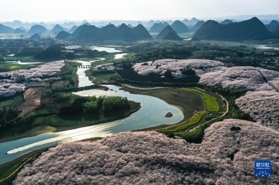 這是3月21日拍攝的貴州省貴安新區(qū)櫻花園(無(wú)人機(jī)照片)。