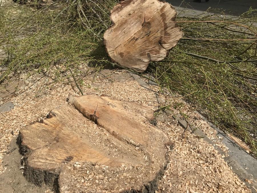 新華融媒、北疆新聞網(wǎng)、北疆新聞App消息(記者 張楊)4月15日下午,記者接到呼和浩特新城區(qū)氣象局西路興松小區(qū)的居民投訴,稱當(dāng)天上午9:00—11:00,在小區(qū)物業(yè)的配合下,小區(qū)院內(nèi)25棵柳樹被不明身份的施工人員齊根砍伐。