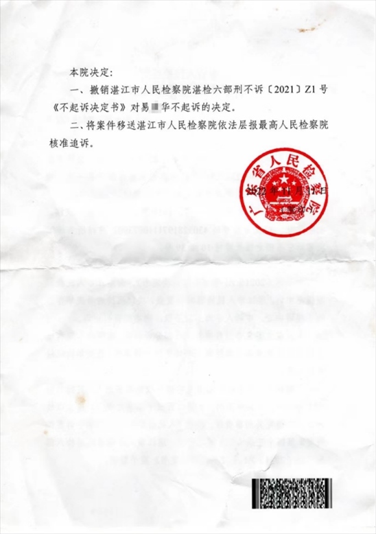 ·廣東省檢復(fù)查“潛逃27年命案嫌犯被不起訴”:撤銷,報最高檢核準追訴。