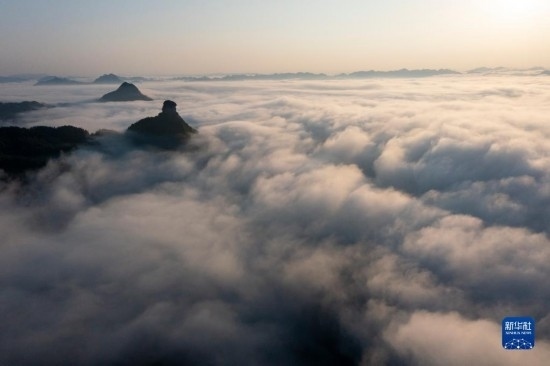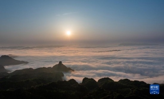 當日,位于重慶市南川區(qū)的世界自然遺產(chǎn)地金佛山雨后放晴,山間升騰起的水汽匯聚成云海在山巒之間流淌,美不勝收。