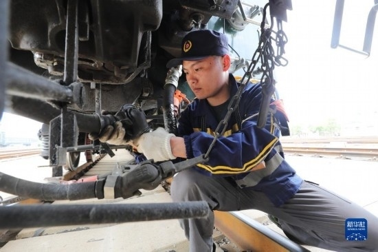 4月28日,中國鐵路上海局集團有限公司徐州站的鐵路連結(jié)員在核對現(xiàn)車編組。