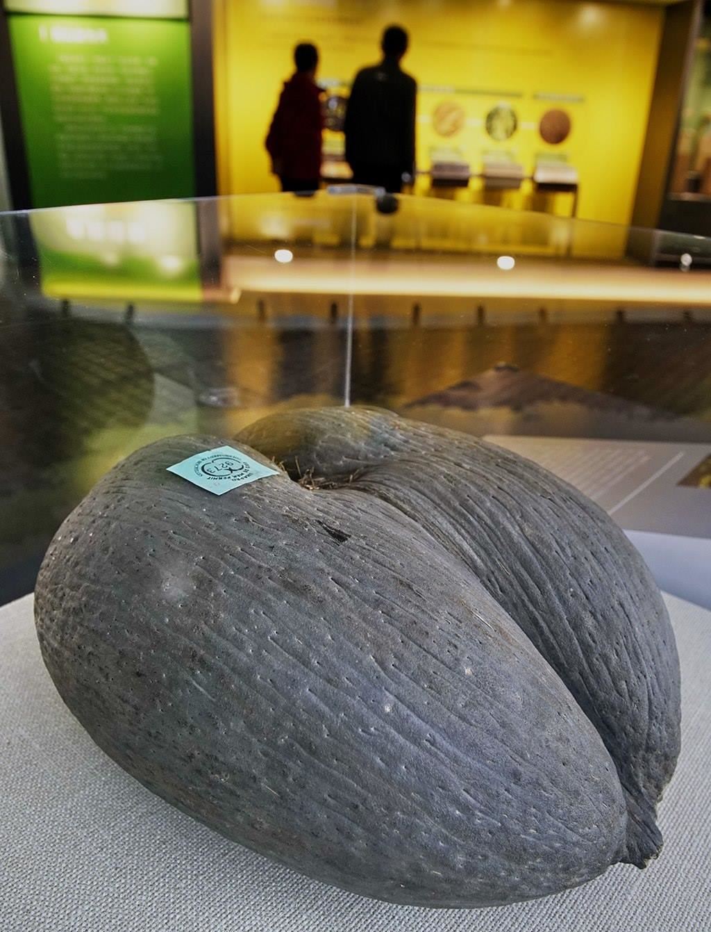這是4月27日在國(guó)家植物園拍攝的海椰子種子。新華社記者 李欣 攝