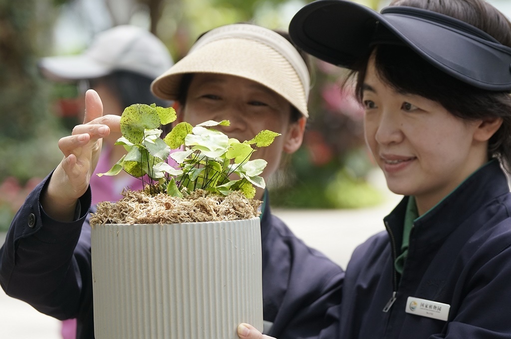 4月27日,國(guó)家植物園的植物專(zhuān)家在觀察荷葉鐵線蕨的生長(zhǎng)情況。新華社記者 李欣 攝