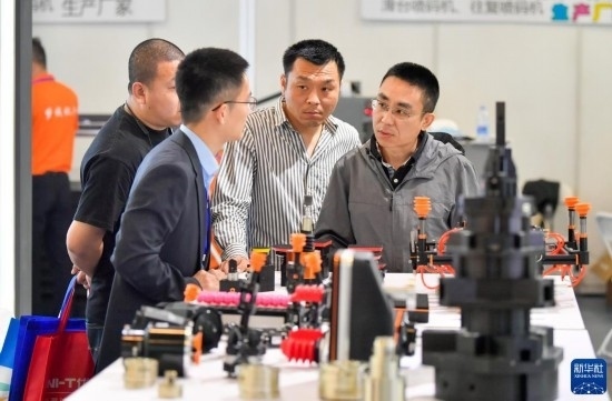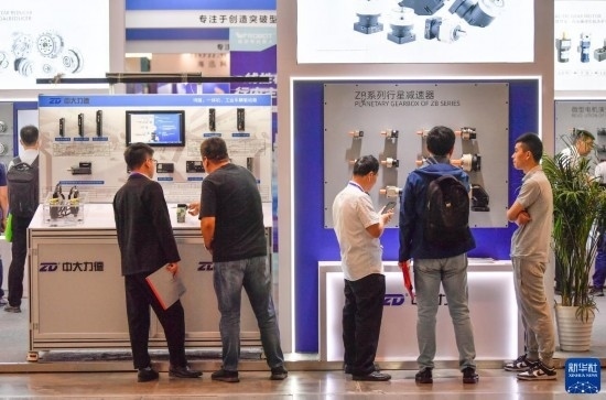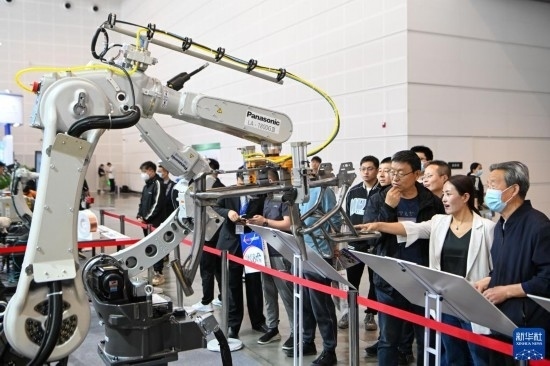 5月8日,在國家會(huì)展中心(天津),觀眾參觀展會(huì)上展出的工業(yè)設(shè)備。