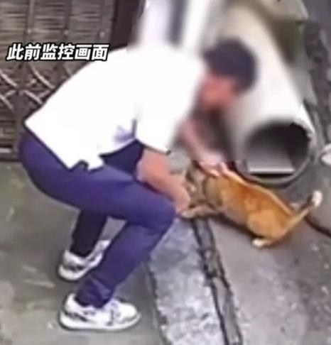 ·男子用刀殘忍割斷貓尾,已被警方抓獲指認現(xiàn)場。