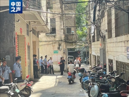 中國之聲報(bào)道播出當(dāng)天上午,瓊山區(qū)多個(gè)職能部門來到這棟樓下,安置仍居住在內(nèi)的居民。