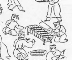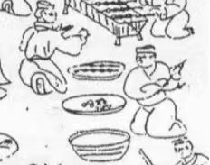1967年春,在峽山出土了一塊石刻,描述了東漢北海都鄉(xiāng)安持里的孫家大院里,40多位家廚正在準(zhǔn)備一場(chǎng)盛宴。其中最引人注目的是,3位家廚正在割肉,4位家廚正在串簽、扇風(fēng)、烤串,一套動(dòng)作下來行云流水,從圖中看去,和如今的烤串已頗有幾分相似。