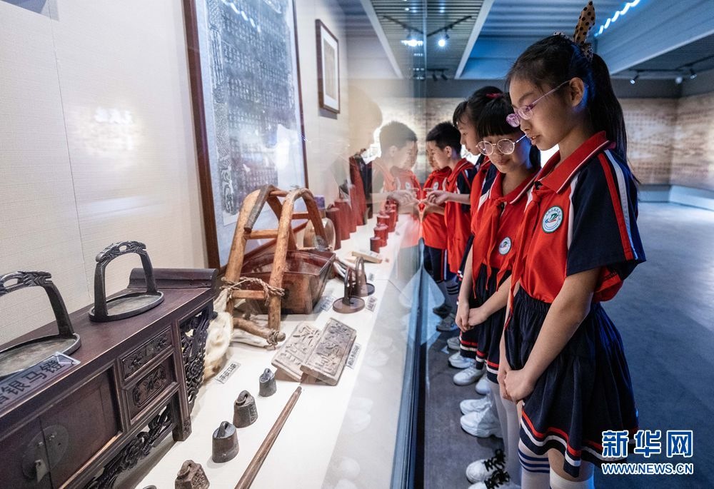 5月17日,呼和浩特市玉泉區(qū)南茶坊小學(xué)學(xué)生在歸化城展示館參觀老物件。新華網(wǎng)發(fā)(丁根厚攝)
