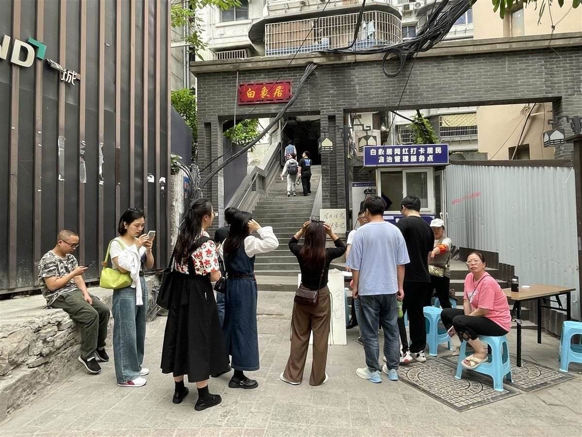 情況說明還顯示,因外來游客太多,居民不堪其擾,5月23日下午,小區(qū)居民自發(fā)組織“居民自治小組”在白象居大門設(shè)置“居民住宅,謝絕參觀”字牌進行訪客準入登記,自發(fā)維護白象居居民樓內(nèi)部秩序管理,維護小區(qū)安寧。目前,白象街社區(qū)居委會已介入居民自治小組的協(xié)調(diào)工作,力爭在游客參觀和居民訴求之間找到一個平衡點。