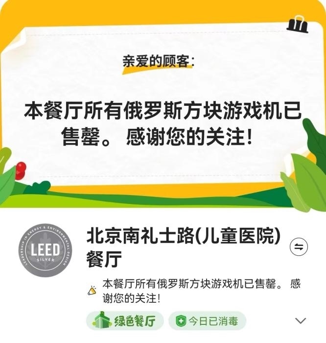 據(jù)麥當(dāng)勞介紹,活動期內(nèi)下單購買任意產(chǎn)品,額外加30元即可獲得俄羅斯方塊游戲機(jī)一個,全國限量40萬個。但當(dāng)日就有不少人表示,已經(jīng)買不到麥當(dāng)勞游戲機(jī)。記者25日登錄麥當(dāng)勞APP,北京多個門店亦顯示俄羅斯方塊游戲機(jī)已售罄。