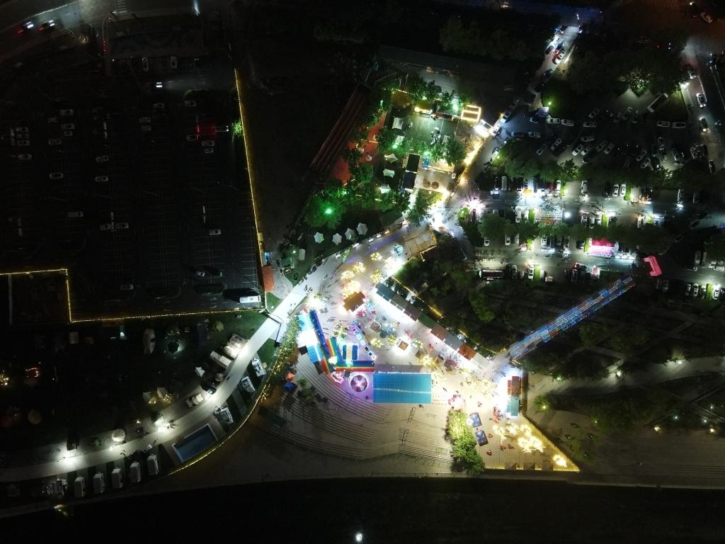 天津市中天煋河村房車露營公園夜景(無人機照片,4月30日攝)。新華社發(fā)
