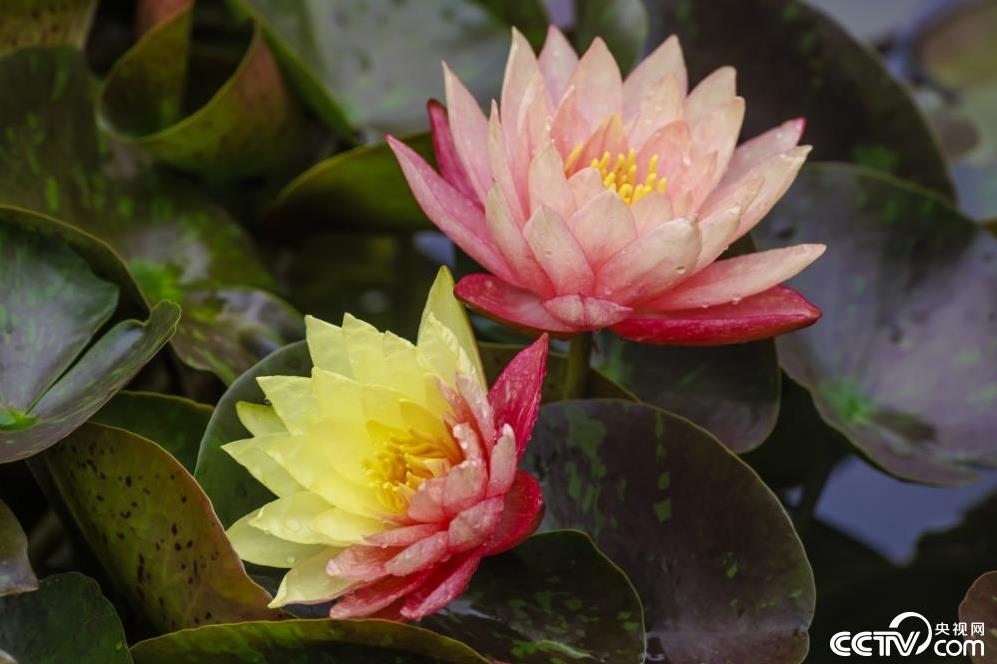 6月7日,昆明大觀樓,雙色睡蓮“萬維莎”綻放。