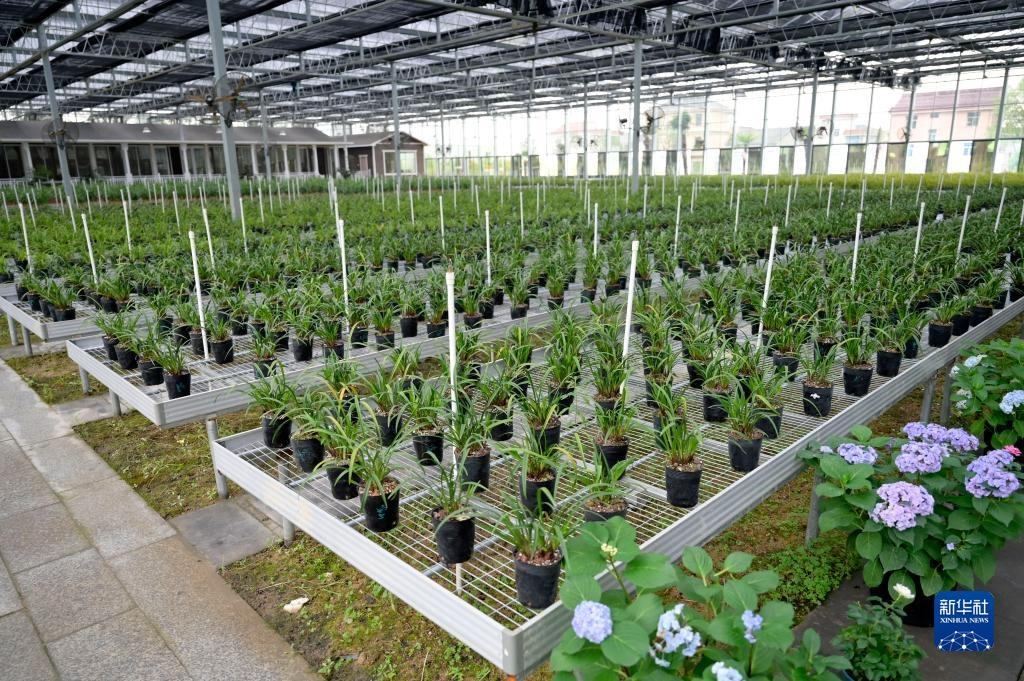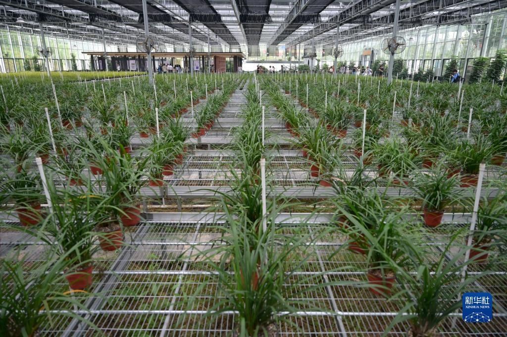 6月8日在浙江省紹興市柯橋區(qū)漓渚鎮(zhèn)棠棣村拍攝的蘭花數字工廠一景。新華社記者 才揚 攝
