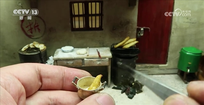 趙培藝:有一位網(wǎng)友外婆腿腳不好,沒(méi)有辦法回老家。然后他跟我說(shuō),能不能給他復(fù)原一個(gè)小的,給她放在床頭上讓她看著,大概拍了二十幾張照片,然后測(cè)量數(shù)值是測(cè)了大概三四次,他原本是什么材質(zhì),我就盡量去用什么材質(zhì),例如小的瓷磚,我都是去廠里訂的小陶瓷片,像地板之類(lèi)的,我都是用手工燒的小紅磚去做。想家里了,一歪頭就能看到。