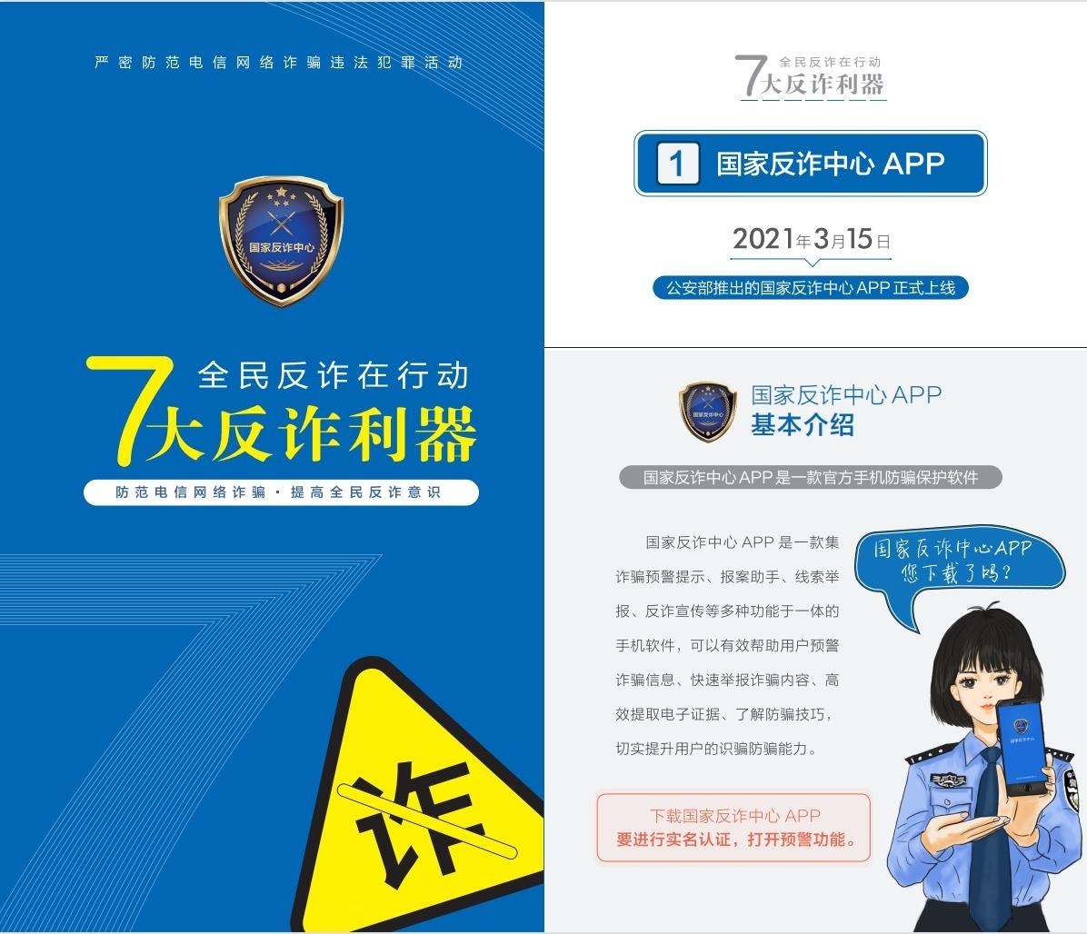 聚焦“關(guān)口前移、預(yù)防為先”,《手冊》詳細介紹了過去兩年里,公安部會同工信部、中國人民銀行聯(lián)合推出的七大反詐利器——國家反詐中心APP、96110預(yù)警勸阻專線、12381涉詐預(yù)警勸阻短信系統(tǒng)、全國移動電話卡“一證通查”、云閃付APP“一鍵查卡”、反詐名片、全國互聯(lián)網(wǎng)賬號“一證通查2.0”的主要功能和下載查詢方法,鼓勵廣大群眾多下載多使用,共同構(gòu)筑攔截電信網(wǎng)絡(luò)詐騙的“防火墻”。