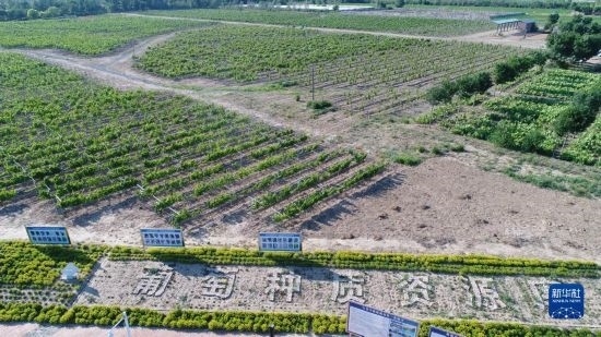 6月21日在河北省懷來(lái)縣拍攝的葡萄種質(zhì)資源庫(kù)(無(wú)人機(jī)照片)。