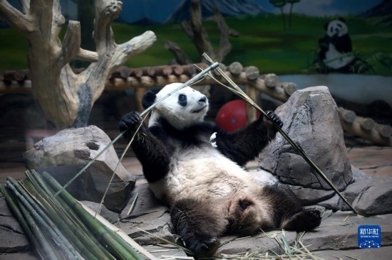 近日,遼寧地區(qū)持續(xù)高溫,在飼養(yǎng)員的精心照料下,鞍山動(dòng)物園里的5歲大熊貓“剛剛”一邊吹著空調(diào)降溫,一邊享用新鮮竹子、水果、胡蘿卜、蜂蜜等,清涼度夏。
