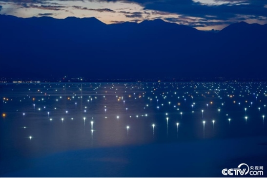 2023年9月9日,云南大理,夜幕降臨,漁燈鋪滿洱海,如星光點(diǎn)亮湖面。