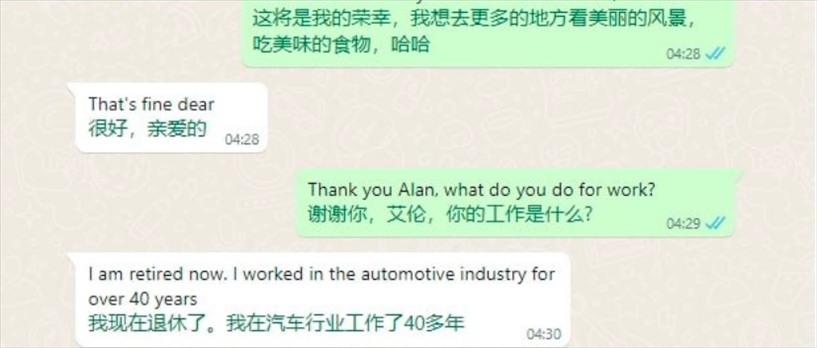 “通過(guò)對(duì)方發(fā)來(lái)的照片可以觀察他居住的環(huán)境、開(kāi)的車等等,判斷他有沒(méi)有錢,沒(méi)有錢就直接丟掉不聊了。詐騙團(tuán)伙里的組長(zhǎng)、團(tuán)長(zhǎng)或者是其他騙到很多錢的人,也會(huì)分享自己聊天經(jīng)驗(yàn),告訴我們有哪些地方需要改進(jìn)?!?/p>