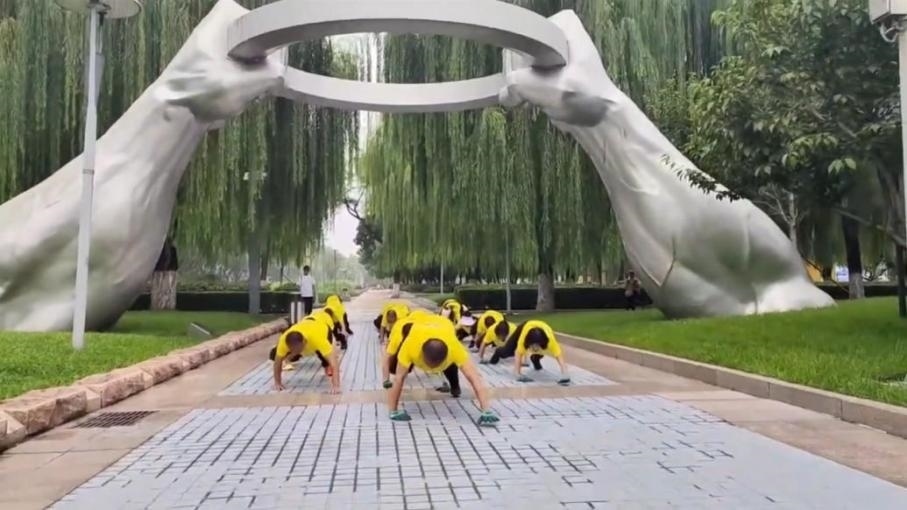 ·男子帶數(shù)十人團(tuán)隊在公園鱷魚爬:可鍛煉全身,越來越多的人加入。