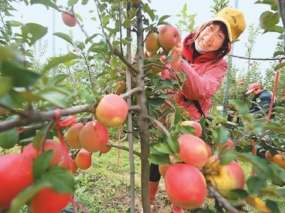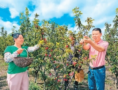 江蘇省宿遷市斯味特萬畝蘋果產(chǎn)業(yè)示范區(qū),園區(qū)職工在采摘蘋果。 楊群、張思遠(yuǎn)攝影報(bào)道 |