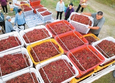 河南省洛陽市宜陽縣柳泉鎮(zhèn)沙漠村,村民在收獲花椒。 田義偉攝(人民視覺) |
