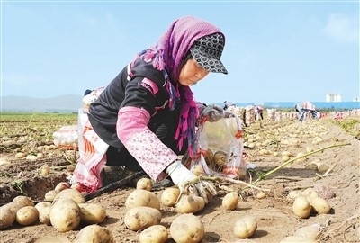 河北省圍場滿族蒙古族自治縣御道口鎮(zhèn)御道口村,一家馬鈴薯種植合作社社員在收獲馬鈴薯。 新華社記者 楊世堯攝 |