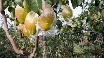 摘下一顆拳頭大小的紅香酥梨,削下果皮,雪白細(xì)膩的果肉在陽(yáng)光下顯得格外晶瑩剔透。一口咬下去,汁水噴涌而出,“香甜”“清脆”是品嘗者的一致評(píng)價(jià)。