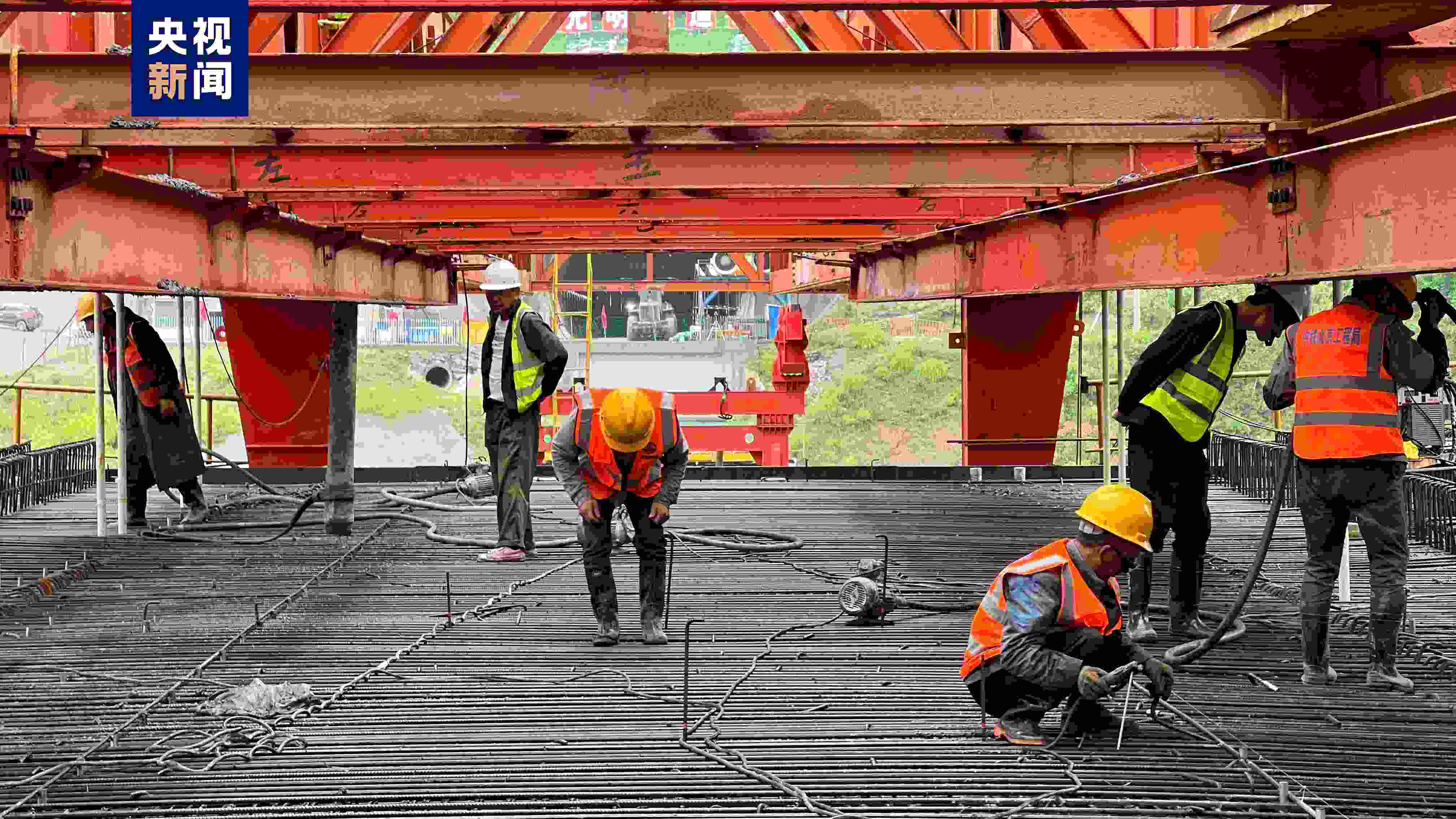 河水壩大橋位于重慶市開州區(qū)巫山鎮(zhèn)河龍村北側(cè),橋址跨越河谷地形起伏較大,植被茂密,水面寬約12米,橋址地層巖性主要為軟塑狀粉質(zhì)黏土,層厚約2.1米,具有承載力低、壓縮性高、厚度分布不均等特點(diǎn),地質(zhì)條件較為復(fù)雜。本次澆筑成功的是河水壩大橋首孔現(xiàn)澆梁,經(jīng)過(guò)施工人員連續(xù)10小時(shí)的奮戰(zhàn),孔長(zhǎng)32m,高3.03m,重約900t的移動(dòng)模架現(xiàn)澆梁順利完成混凝土澆筑。據(jù)中鐵北京工程局成達(dá)萬(wàn)高鐵項(xiàng)目一工區(qū)經(jīng)理烏小平介紹:“河水壩大橋首孔現(xiàn)澆梁采用移動(dòng)模架現(xiàn)澆法施工,制梁具有機(jī)械化程度高、靈活性強(qiáng)、節(jié)約人力成本、施工周期短、使用輔助設(shè)備少、重復(fù)利用性高等特點(diǎn),既保證了工程質(zhì)量,又能加快施工進(jìn)度,具有良好的經(jīng)濟(jì)效益?!币苿?dòng)模架現(xiàn)澆法施工有效解決了控制性工程長(zhǎng)大隧道架梁機(jī)無(wú)法及時(shí)架梁的問題,縮短了整體工期,確保項(xiàng)目按期順利推進(jìn)。