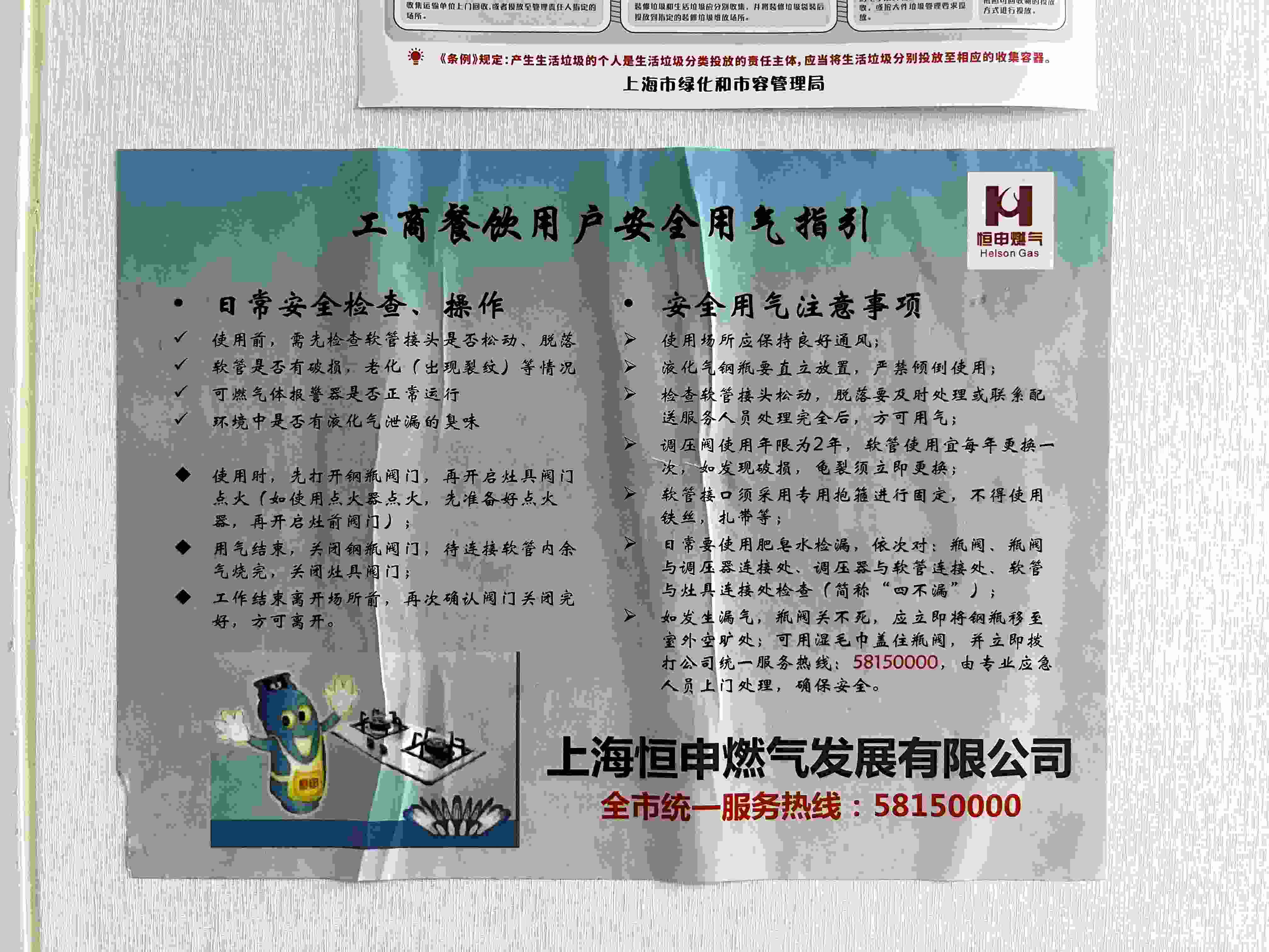 燃氣公司在商鋪內張貼的安全用氣指引