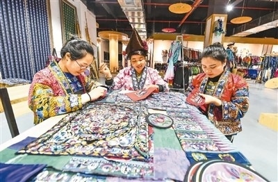 在苗族聚居的貴州,近年來(lái)將這一文化瑰寶作為產(chǎn)業(yè)大力推動(dòng)發(fā)展,婦女們背著娃、繡著花、養(yǎng)活自己養(yǎng)活家,不僅用一針一線(xiàn)“繡”出美好生活,還將蘊(yùn)藏著古老文化的苗繡巧妙融入時(shí)尚元素,形成產(chǎn)業(yè)融合互動(dòng)。如今,古老的苗繡日益走進(jìn)大眾生活,煥發(fā)蓬勃生機(jī)。